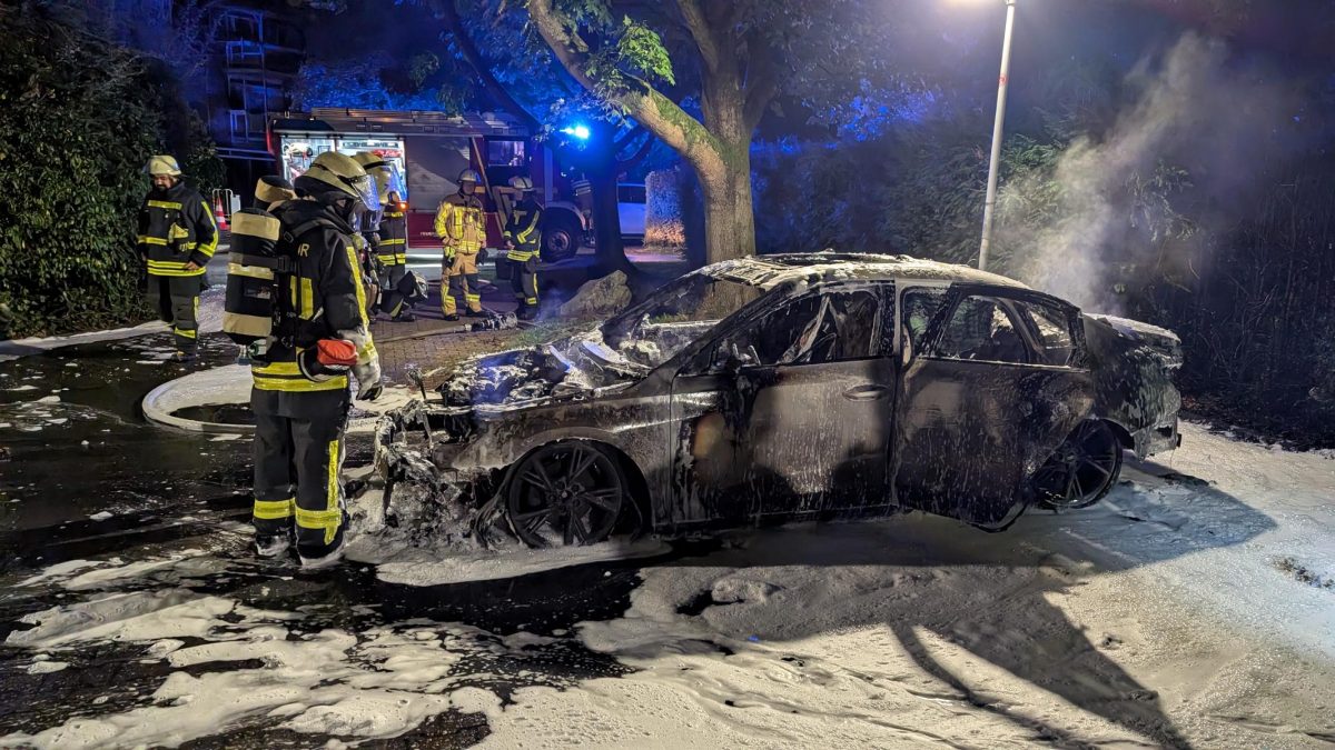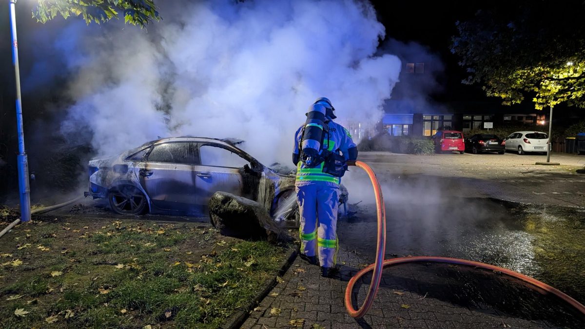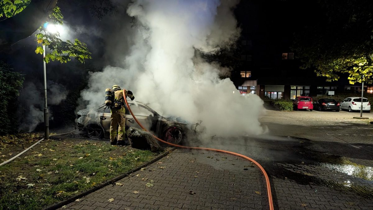 Auf dem Parkplatz der Sparkasse stand ein PKW im Vollbrand. Das Feuer begann sich bereits auf die umliegende Vegetation auszubreiten. Sofort wurde ein Trupp unter Atemschutz zur Brandbekämpfung eingesetzt. Mit einem zweiten Strahlrohr wurden die Löscharbeiten unterstützt und somit das Feuer schnell unter Kontrolle gebracht. Abschließend wurde das Fahrzeug großzügig mit Schaum eingedeckt um ein erneutes Aufflammen zu verhindern. Die Kollegen der Berufsfeuerwehr unterstützen uns beim Aufbau der Löschwasserversorgung.