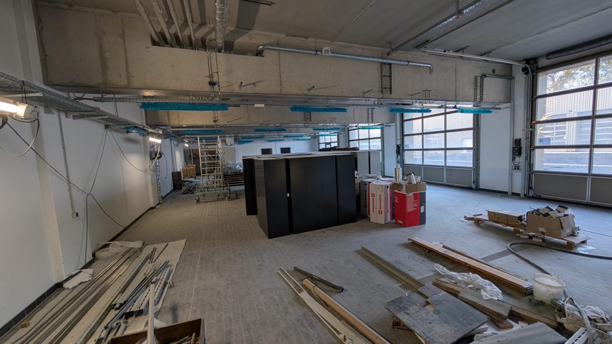 Die Heizungsanlage des Gebäudes ist mittlerweile soweit fertig, dass sie schon betrieben werden kann und die Räume nun auch in der kalten Jahreszeit warm hält. Das wird gleichzeitig dafür genutzt, um letzte Restfeuchte im Gebäude zu trocknen und so Schimmelbildung zu verhindern.