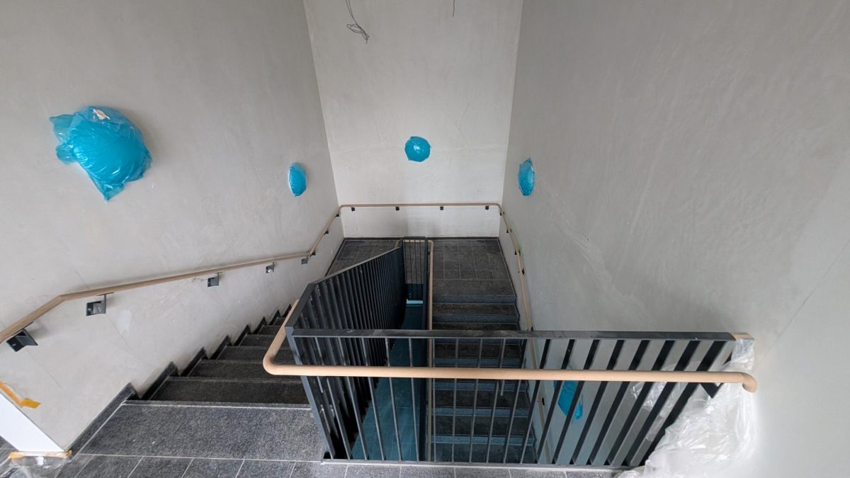 Stetig schreitet der Innenausbau voran. Die ersten Wände wurden bereits verputzt und in einzelnen Räumen wurde auch schon Estrich eingebracht. Überall tauchen neue Lüftungsleitungen, Elektroleitungen, EVD-Leitungen, Schalter und Steckdosen auf. Als kleines Highlight konnte bereits die neue Sirene am Ausgang zur zukünftigen Dachterrasse installiert und getestet werden. Diese Sirenen werden bei größeren Schadensereignissen in der Stadt oder im Katastrophenschutzfall ausgelöst, um die Bevölkerung zu warnen.